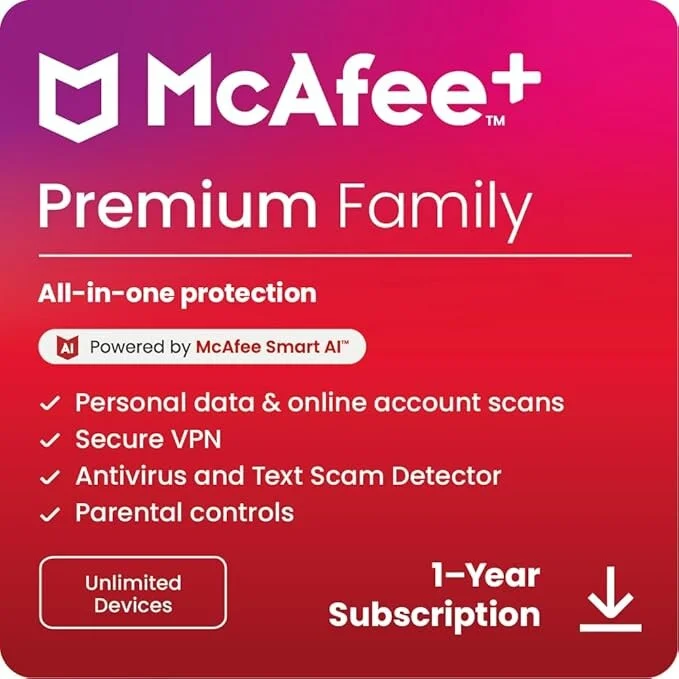 Be the first to review “McAfee+ Premium Family Unlimited Devices 2025 Ready | Cybersecurity Software Includes Antivirus, Secure VPN, Password Manager, Identity Monitoring, Parental Controls | Download”